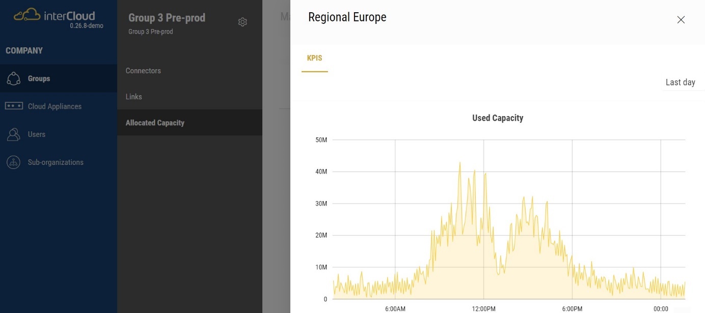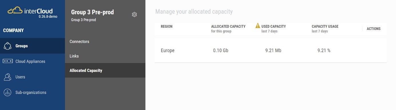 Each Group has an Allocated Capacity that is a fraction of the total Subscribed Capacity by the client. To view the Allocated Capacity of a Group, and its usage, click on the left gray panel on "Allocated Capacity".