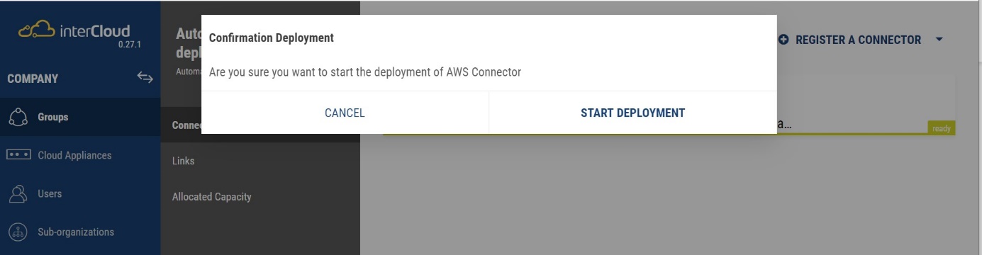 In a matter of minutes, the connector is then deployed on InterCloud’s infrastructure.