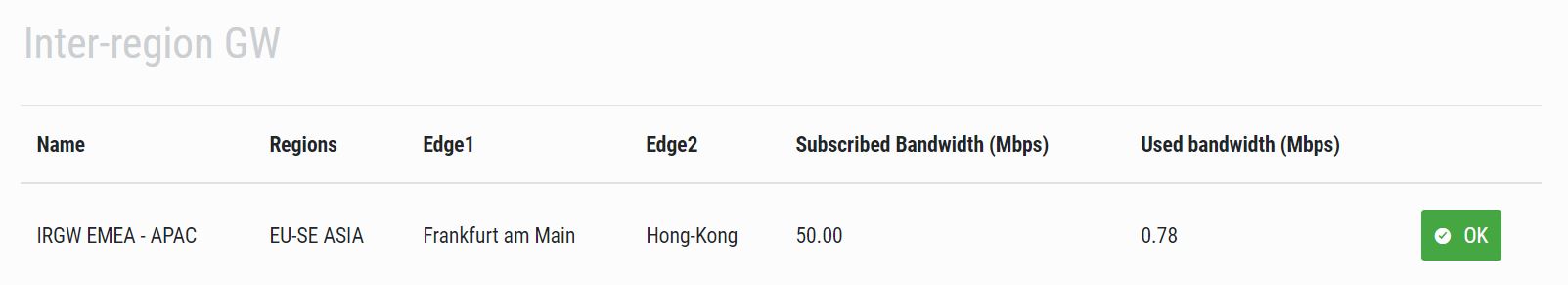 The list of available Inter-region Gateway are displayed when the Inter-region GW is selected in the left panel.