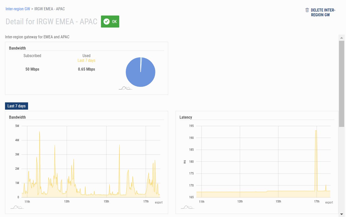 When clicking the Inter-region Gateway in the Inter-Gateway list, the user accesses the Inter-region Gateway details.